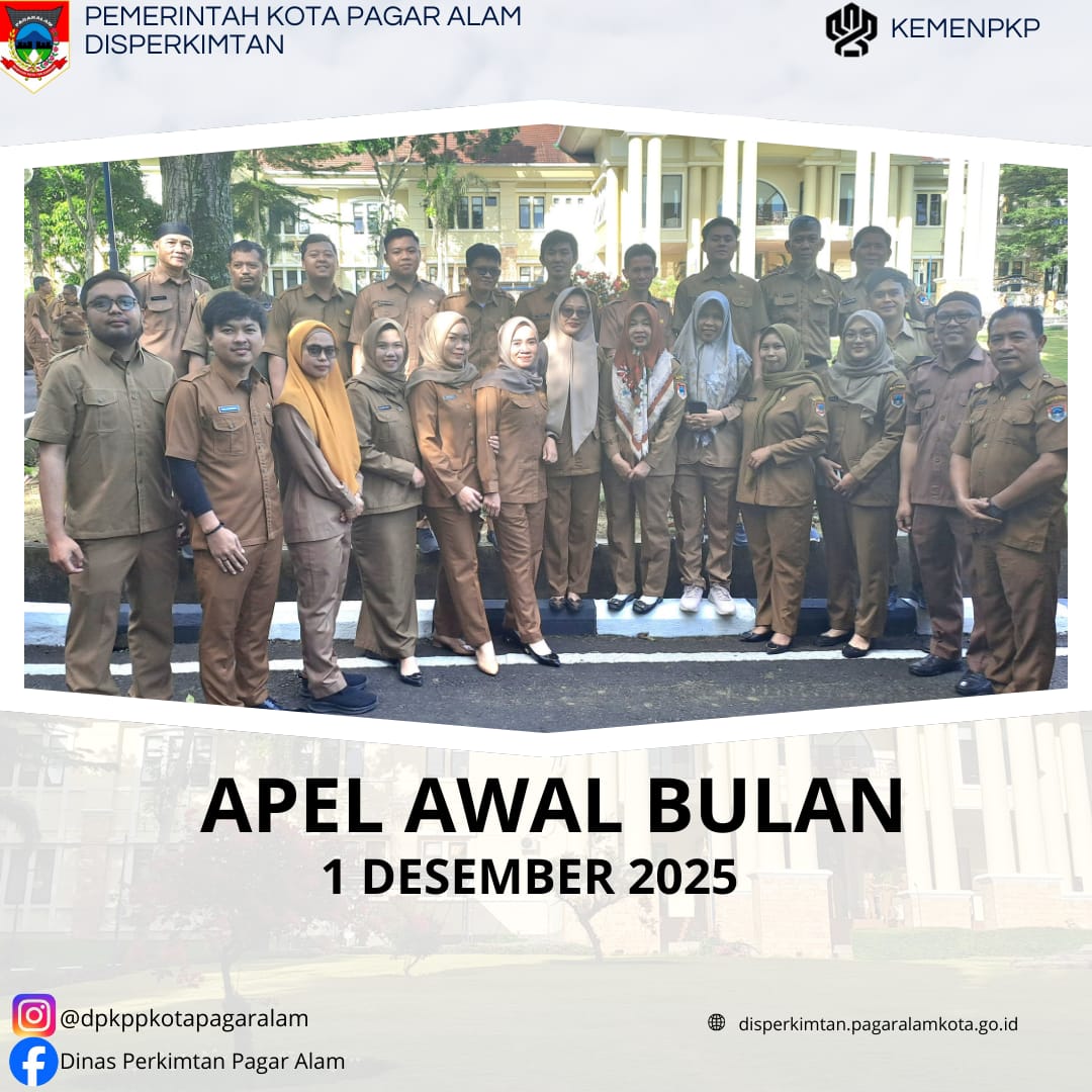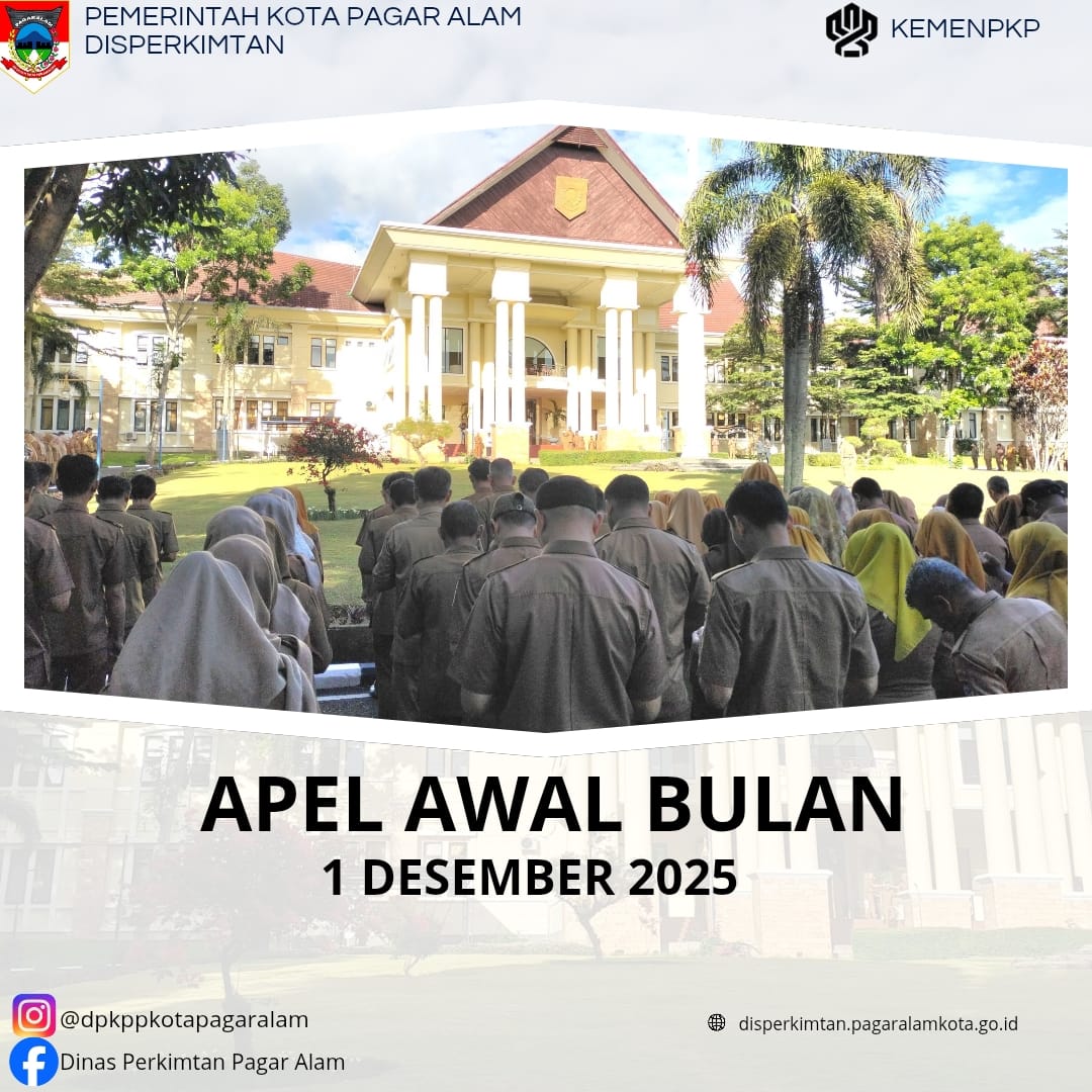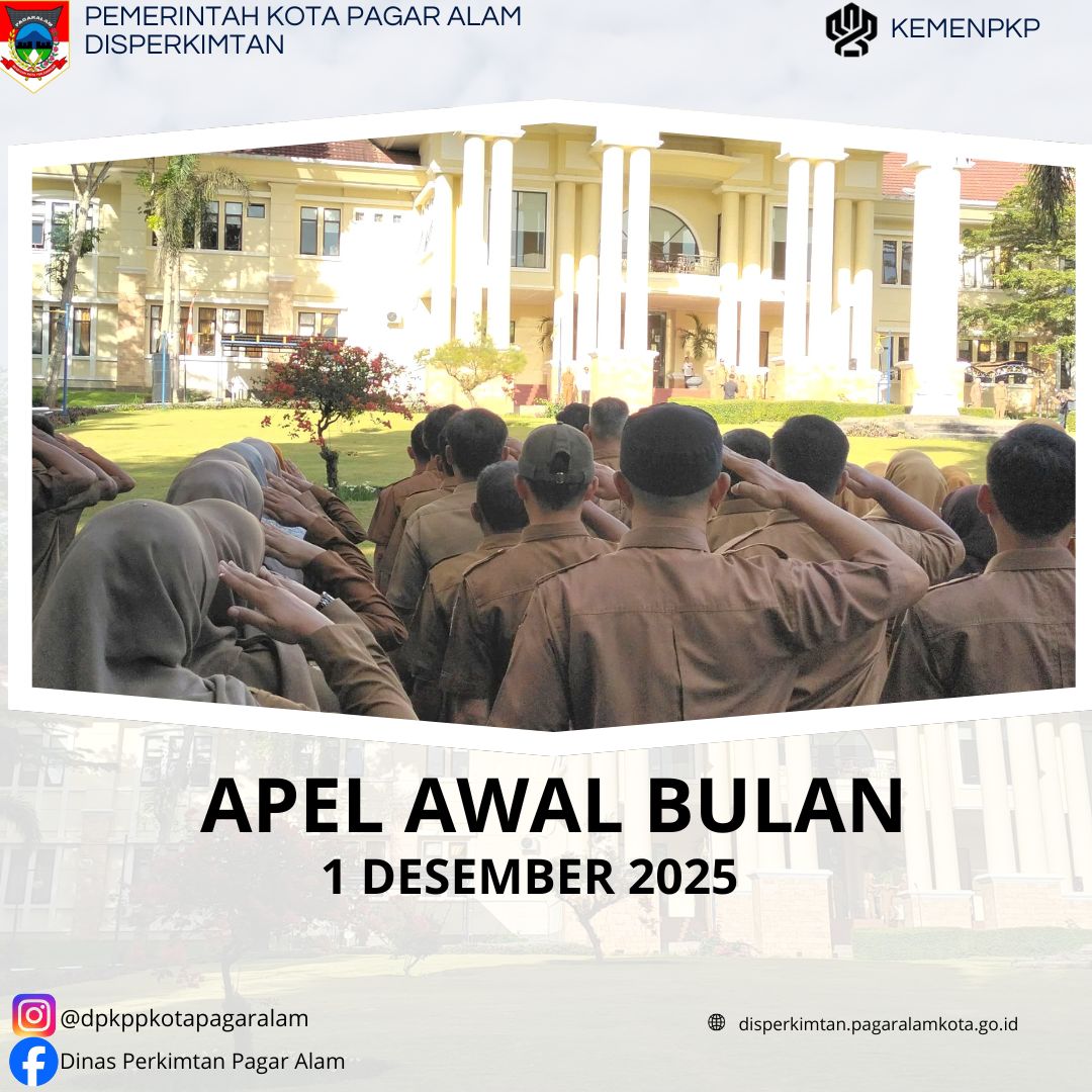 ASN Disperkimtan Kota Pagar Alam turut hadir dan mengikuti Apel Awal Bulan dalam Rangka Memperingati Hari AIDS Sedunia, Hari Bhakti PU, Hari Disabilitas Internasional (HDI), dan Hari Anti Korupsi Sedunia. Dihalaman Kantor Wali Kota Pagar Alam (Senin, 1 Desember 2025).